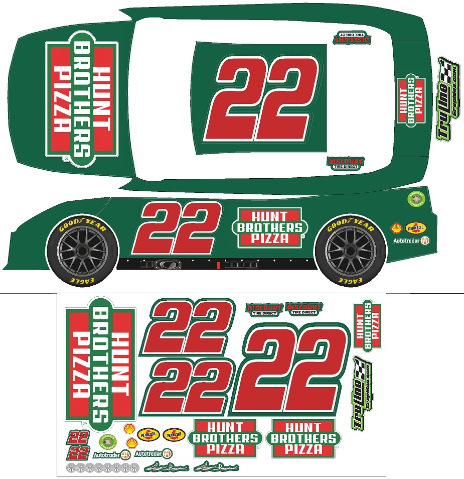 Based on the #22 Joey Logano Hunt Brothers Pizza sponsored RC replica decal sheet