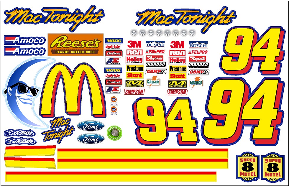 #94 McDonalds Tonight Bill Elliott decal sheet